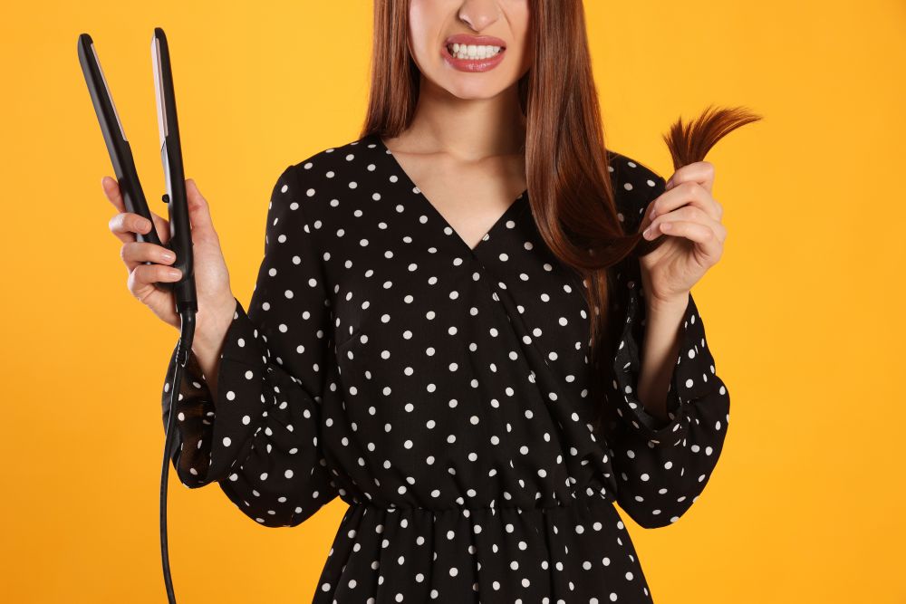 Applying high heat to your hair on a regular basis dehydrates it and affects its capacity to retain moisture. Moreover, exposing wet hair to heat of over 125C can lead to the formation of gas bubbles within the hair shafts. This makes them dry, brittle and prone to fractures [7]. It can be difficult to fix heat-damaged hair if it has already split so it is best to prevent this by using heat styling sparingly.