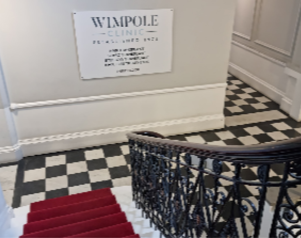 Hair Transplant Clinic London 2 Harley Street & 18-22 Queen Anne Street 30,000+ Satisfied Customers 1,500+ Positive Reviews 51+ Years of Experience Hair Transplant Clinic London Wimpole Clinic has been based in London and providing hair transplants since 1975 and is home to our headquarters and surgical theatres. All our London clinic staff are friendly, professional, and dedicated to delivering exceptional patient care, from the moment you arrive and throughout the aftercare and review process.We have surgical suites and consultation rooms in London at 2 Harley Street and 18-22 Queen Anne Street, where patients can meet their patient advisor and surgeon for an in-person consultation, as well as have their FUE or FUT hair transplants if they decide to proceed with treatment. Our Queen Anne Street clinic is also known as Harley Street Specialist Hospital, and is owned by the Wimpole Clinic.You’ll get the opportunity to see our theatres and preview the welcoming environment where your surgery will be carried out. Our London clinic is registered with the Care Quality Commission, and our team comprises some of the most prominent surgeons in the UK, all of whom are licensed under the General Medical Council. You can meet them and ask any questions about your procedure.We have a limited number of consultations each day so you’ll never feel rushed. Our patient welfare and comfort are absolute priorities in every hair restoration surgery procedure or treatment we do. Book A Free Consultation Nearby Accomodation & Parking No. 2 Harley Street, London, (HQ & Surgery) 2 Harley Street, LondonWIG 9PA Book A Free Consultation 18-22 Queen Anne Street, London (Surgery) 18-22 Queen Anne Street,London,W1G 8HU Book A Free Consultation Trustpilot Clinic Tour Award Winning Hair Transplant Clinic London Clinic Contact Info Email info@wimpoleclinic.com Phone +44 (0) 207 935 1861 Opening Times Monday - Friday 8am - 8pm Saturday 10am - 5pm Sunday Closed Location 2 Harley Street, London WIG 9PA Schedule An In Person Or Video Consultation At Our London Clinic Book a Consultation Simply fill in your details and we'll get in touch with you shortly. Name* Email* Phone* Clinic*Choose Clinic Location*London, Harley StreetBirminghamBrightonBristolLeicesterManchesterNewcastleNottinghamOxfordMayfair Hair (VIP)MessageConsent* I consent to my information being used to contact me regarding my enquiry in accordance with our Privacy Policy Promotion I would like to receive information, promotions and offers via email CAPTCHA Δ Award Winning Hair Transplant Clinic How to Get To Our London Hair Transplant Clinics in Harley Street By Bus There are 2 bus stops near our clinics on Harley Street: Margaret Street Oxford Circus (Stop RE). This stop is 0.2 miles away and a 5 minutes walk.Harley Street (Stop L). This stop is 0.5 miles away and a 10 minutes walk. By Train The nearest London Underground station to our clinic is the Oxford Circus stop. This stop is located on the Bakerloo, Central, and Victoria lines. From here, it is only a 6 minutes walk away. By Car From Marylebone Rd (A501), turn onto Harley Rd and continue until you see our clinic. Our London clinics are located near the intersection of the A5204 and Harley St. near Cavendish Square Gardens. By Plane The nearest airports to our London clinic are London Heathrow International Airport, London Gatwick Airport and City Airport and they all share similar distances via train. From the airpport you may drive, take a taxi, bus or train to our London clinic location. Clinic Opening Times Monday - Friday 8:00 AM – 8:00 PM Saturday 10:00 AM – 5:00 PM Sunday Closed Parking On Street ParkingNearby on-street parking is ‘Pay by Phone’ only. This is a quick and secure way to pay by debit /credit card Nearest Car ParksQ-Park Harley Street, Queen Anne Mews, London W1G 9HF (0.2 miles, 3 minutes walk)ParkBee Q-Park – London, Harley Street, Queen Anne Mews, London W1G 9HF (0.2 miles, 3 minutes walk)JustPark, Oxford St, London W1G 0PG (0.1 miles, 3 minutes walk) Congestion Chargehttps://www.tfl.gov.uk/roadusers/congestioncharging Nearby Accommodation Boutique10 Manchester Street – 0.5 miles, 10 minutes walk 4 StarHoliday Inn Oxford Circus – 0.4 miles, 4 minutes walkHoliday Inn Regents Park – 0.5 miles, 12 minutes walk*Patients of the Wimpole Clinic get discounted accommodationDurrants Hotel – 0.5 miles, 10 minutes walkThe Marylebone Hotel – 0.3 miles, 6 minutes walkThe Mandeville Hotel – 0.5 miles, 10 minutes walk 3 StarBlandford Hotel – 0.9 miles, 14 minutes walkThe Grazing Goat Marylebone – 0.6 miles, 13 minutes walk Mark's FUE hair transplant review The experience from start to finish has been fantastic. After an initial conversation with Matt, I was put at ease about what to expect on the day and all of my questions were answered. On the day Dr. Malkani and his team were brilliant. There was a very relaxing atmosphere and the team couldn’t have done more for me. The Wimpole Clinic was recommended to me by a friend who had a transplant in July as he had a great experience. I’ll also be recommending the clinic to friends considering going ahead with treatment. Read More Testimonials Before & After Gallery Our Surgeons & Specialists See Our Surgeons Dr. Michael May (FRCS) Dr. Michael May (FRCS) Medical Director & Principal Surgeon VIew Bio → Dr. Ismail Ughratdar (FRCS) Dr Ismail Uughratdar (FRCS) VIew Bio → Dr Mir Malkani Dr Mir Malkani (MBBS, MISHRS, FRCS) VIew Bio → Dr Ahmad Moussa (FRCS) Dr Ahmad Moussa (FRCS) VIew Bio → Dr Meena Zareie (GMC) Dr Meena Zareie (GMC) VIew Bio → Dr Peter Thomas (GMC) Dr Peter Thomas (GMC) VIew Bio → Dr Umear Ahmad (GMC) Dr. Umear Ahmad (GMC) VIew Bio → Dr Ricardo Correia (GMC) Dr. Correia (GMC) VIew Bio → Paru Shukla Paru Shukla (Trichologist) VIew Bio → Dr Barry Abdelrahimsai (GMC) Dr Peter Thomas (GMC) VIew Bio → Our Surgeons Are Registered, Members Of, Recommended and Regulated By: A* Aftercare Our c